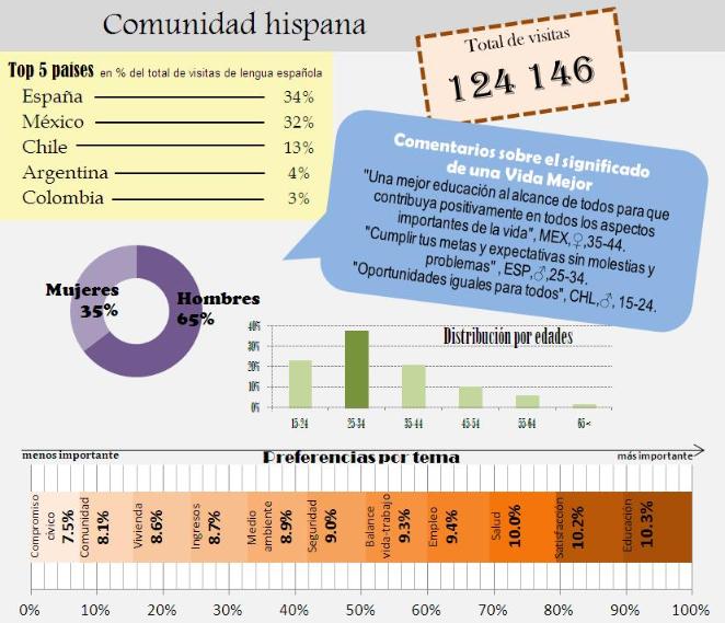 El verano se acerca, y con buen tiempo aumenta la sensación de bienestar. Para saber más sobre este tema, la OCDE te invita en esta tercera edición a conocer con profundidad la calidad de vida de sus países miembros, además de Brasil y la Federación Rusa. A partir de hoy, Your Better Life Index está disponible también en español. Sí, Tu Índice para una Vida Mejor da la bienvenida a su comunidad hispana como se merece.